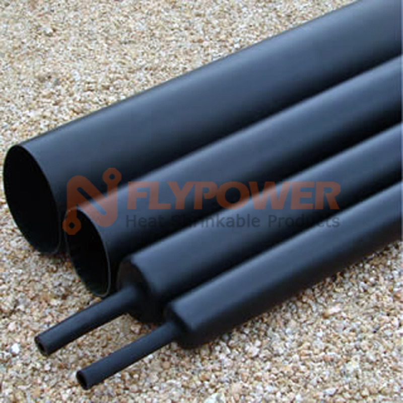 Black Adhesive semi-rigid wall tubing has excellent sealing,anti-corrosion, moisture,impact and abrasion resistance.Widely used in metal fittings, reinforced joints need mechanical protection,anti-corrosion,sealing the working environment. It can be used for a gas pipeline through walls, roads, railways, slope protection reinforced anti-corrosion treatment.