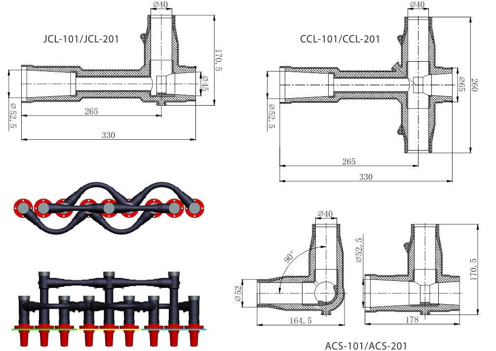 - Applications: BH-FCS 630A top bus bar flexible connection system, Europe style cross connector and J type connector is made of EPDM rubber, mainly applied for the top connection of RMU and cable branch system to fit the loaded switch socket with sealing and insulation function; such special designed connector can be also made screened or unscreened, the RMU can be made more compact and reliable with such special designed connector to balance performance and cost at the same time. Assembled with 630A Europe style cross type connector and bus bar connector, the bas bar system can be realized with multi-connection to the series of switch gears to optimize the connection solution.